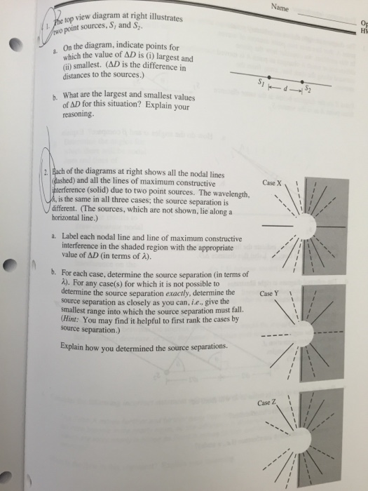 The top view diagram at right illustrates two point sources s1 and s2. 42the diagram below shows two pulses traveling toward each other in a uniform medium. On the diagram indicate points for which the value of d is i largest and ii smallest.
