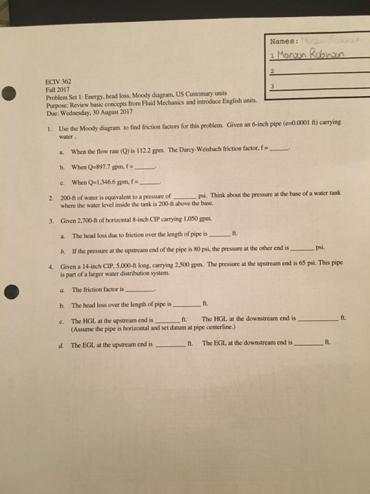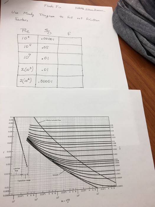 Solved Use Moody Diagram To Fill Out Friction Factors Chegg Com