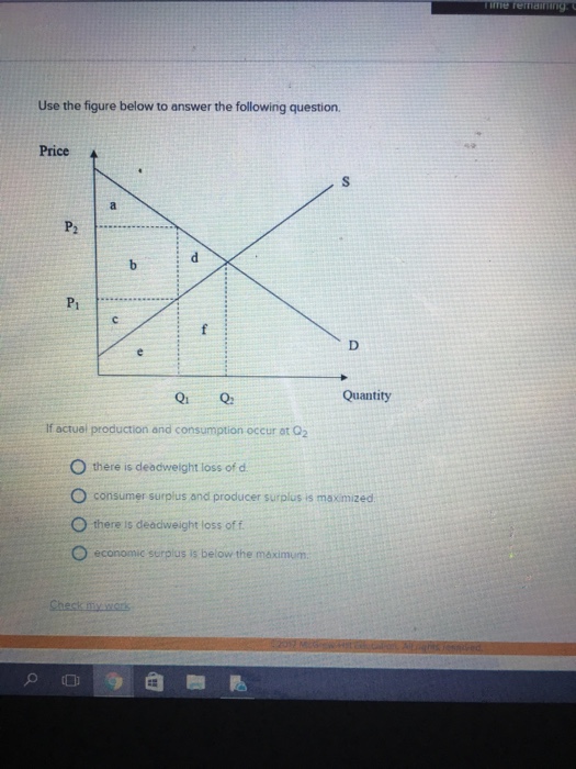 Refer to the diagram if actual production and consumption occur at q3. Consumer surplus is maximized. An efficiency loss or deadweight loss of e d occurs. Refer to the diagram if actual production and consumption occur at q1 rather than at equilibrium quantity q2.