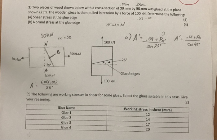 Solved 1 Two Pieces Of Wood Shown Below With A Cross Sec