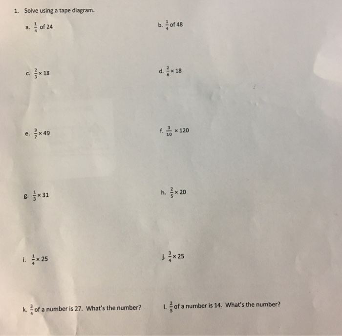 Problems Fractions And Tape Diagrams Worksheet Education Com