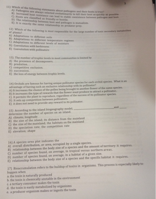 Ecology Review Key B Sample Multiple Choice Questions 1 All Of