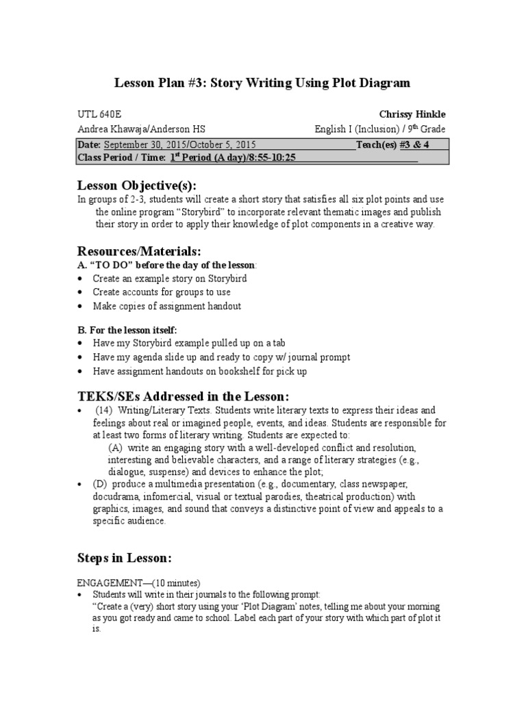 Short story to teach plot diagram. After viewing a powerpoint presentation on plot structure students will read and analyze the plots of three different short stories as a class in small groups and individually. You may also have the students use the plot diagram to tell a personal story or to briefly retell a favorite movie. Model on a board or poster how the chart would look for that story.