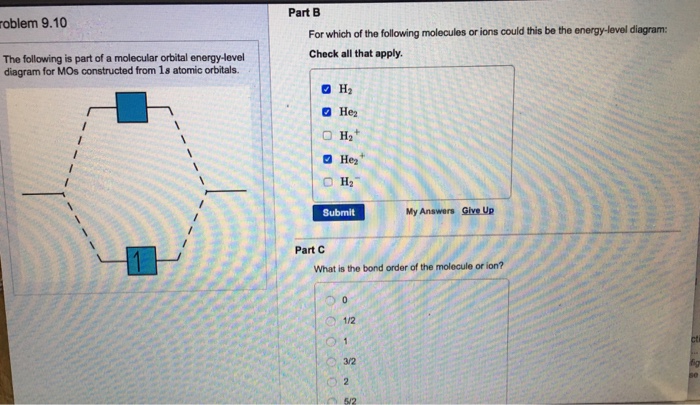 Answer to b for which of the following molecules or ions could this be the energy level diagram. H2 he2 h2he2 or h2. H n 1 2 4 3 o o h h h h c c o 6 5 h h n o h 7 8 h h h c c n a b c d 931 the three species nh2 nh3 and nh4 have hnh bond angles of 105 107 and 109 respectively.