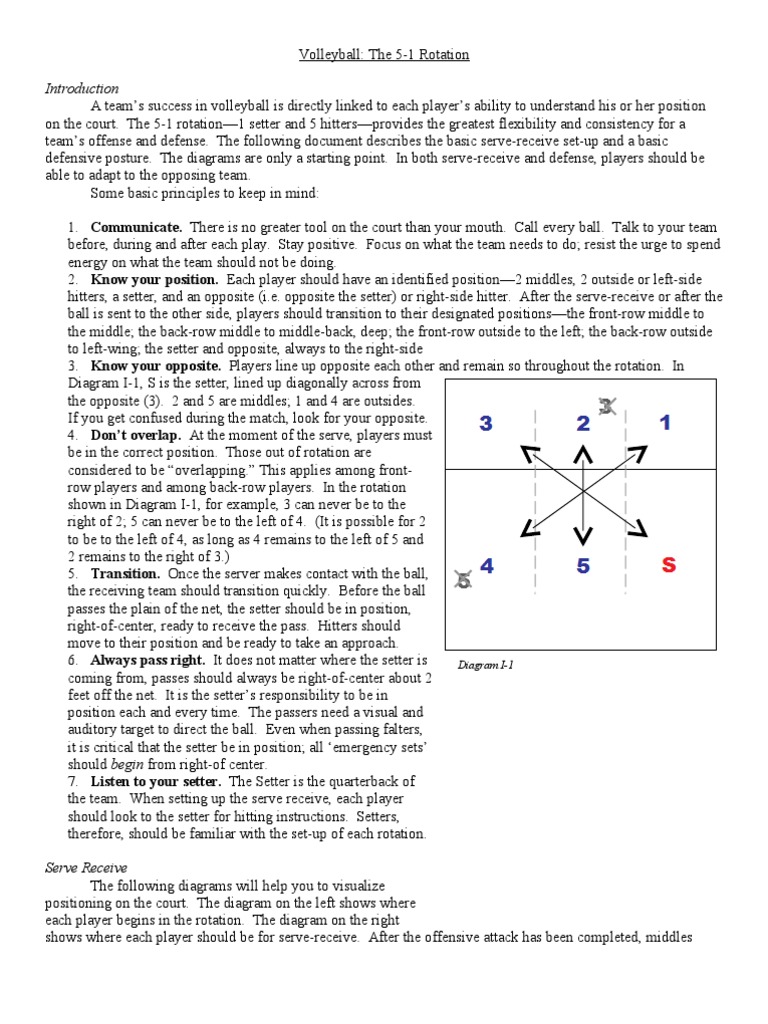 Hitters 1 and 2 at the direction of the setter can hit from wherever theyd like. Go back to volleyball offense go to rotation diagrams. Volleyball court central 5 1 rotation explained 5 1 rotation diagrams.