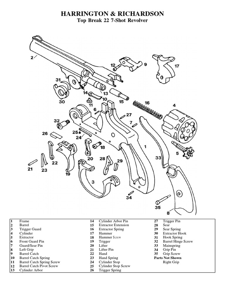 H R Young America Double Action 7 Shot 22 Cal Revolver Diagram