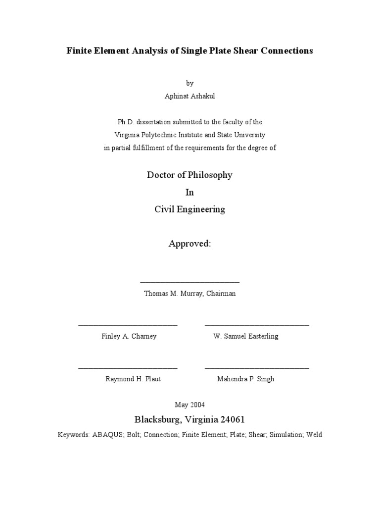 Thesis Phd Finite Element Analysis Of Single Plate Shear Connections