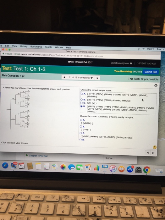 Use the tree diagram to answer each choose the correct sample space. Using a tree diagram obtain the sample space. A couple plans to have four children.