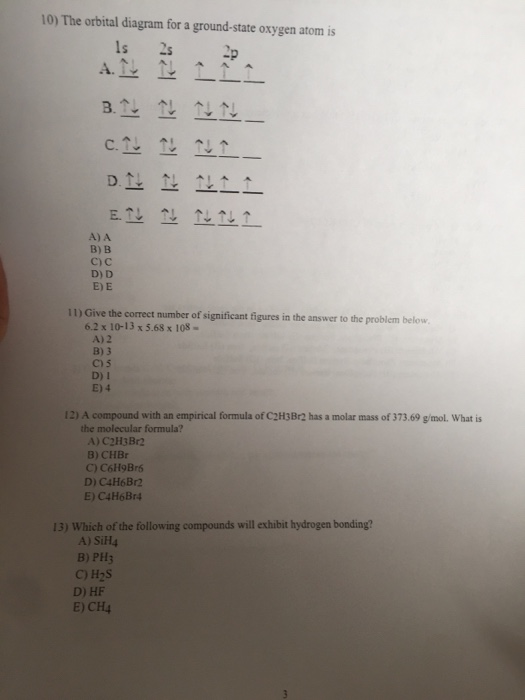 Solved 10 The Orbital Diagram For A Ground State Oxygen