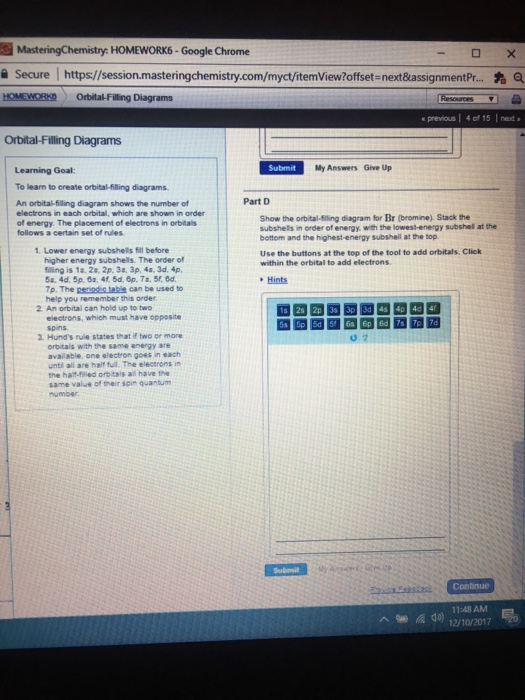 Show the orbital filling diagram for rm br bromine. Use the buttons at the top of the tool to add orbitals. Show the orbital filling diagram for br bromine.